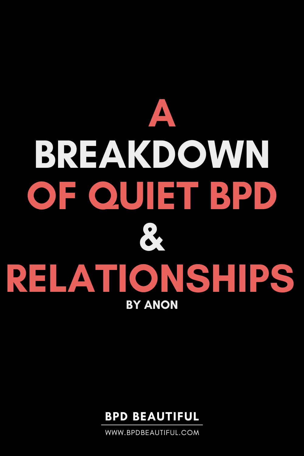 For those unfamiliar with quiet BPD, it is characterized by many of the same traits as classic BPD — fear of abandonment, emotional instability, impulsivity, intense mood swings — but individuals with the quiet BPD subtype tend to experience the intensity of their emotions inwardly and take their feelings out on themselves.
